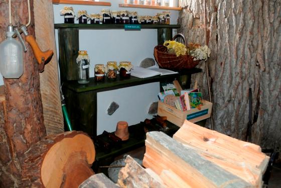 Wnętrze ośrodka - ekspozycja na temat pracy leśnika